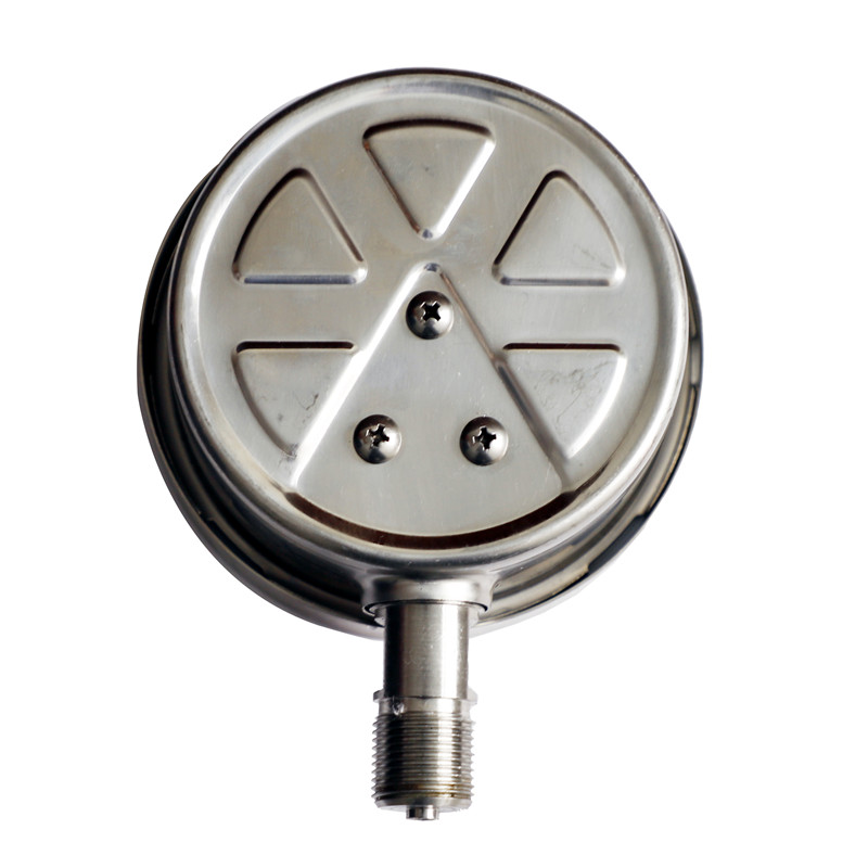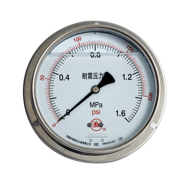 耐震不銹鋼壓力表在表體內(nèi)充裝阻尼液并且加裝阻尼裝置,使壓力表起到減震、抗震的作用,適應(yīng)劇烈振動(dòng)環(huán)境,耐受脈動(dòng)介質(zhì)及沖擊載荷。耐震不銹鋼壓力表全部采用不銹鋼材料制造,主要零件采用不銹鋼SUS316L材料,適用于有腐蝕性氣體環(huán)境,可檢測腐蝕性較強(qiáng)介質(zhì)的壓力或真空,壓力表指示穩(wěn)定清晰。廣泛應(yīng)用于石油、化工、機(jī)械、冶金等工業(yè)部門壓力測量。